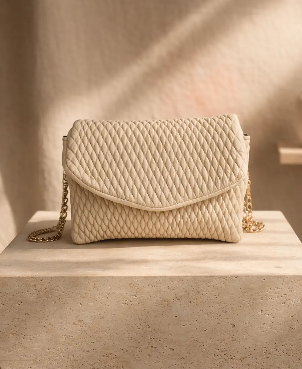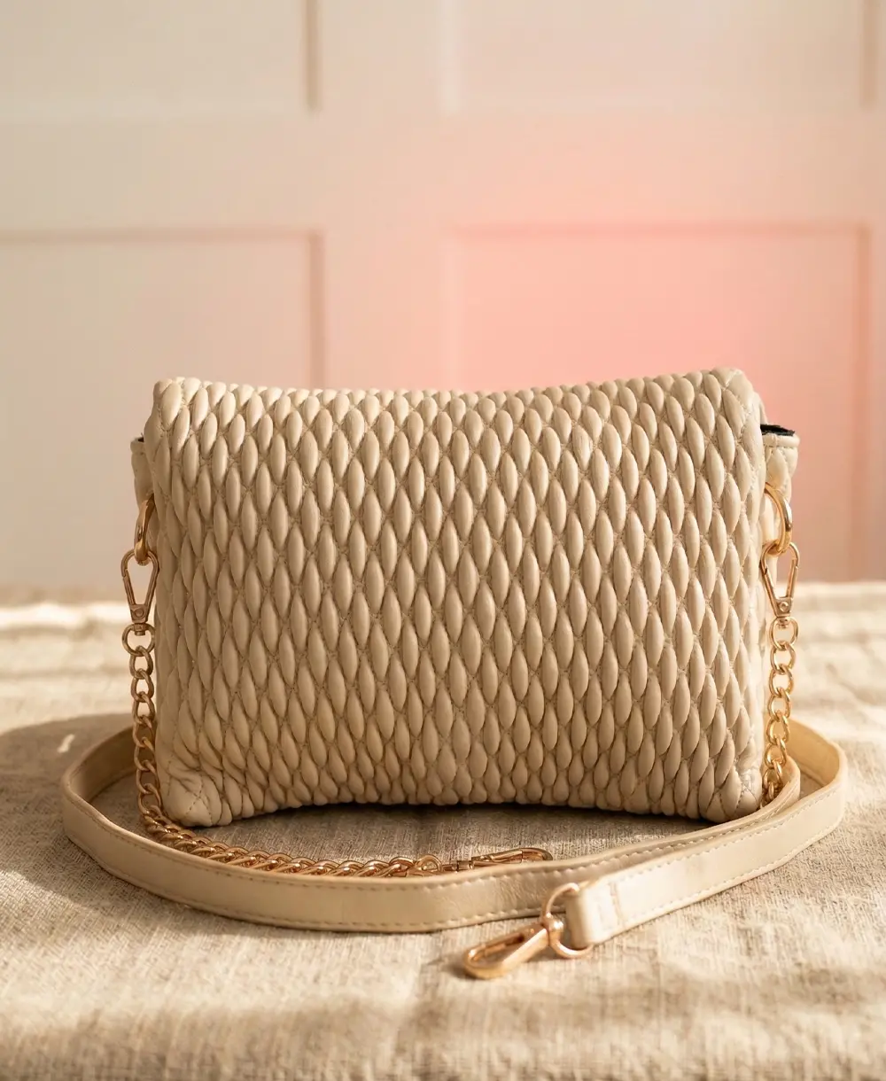 El toque chic para tus salidas. Diseñada en material sintético color crema, cuenta con dos útiles compartimentos. Su atractivo principal es la sofisticada correa ajustable que combina poliuretano y eslabones dorados. Condición: 9.5/10 (Excelente), con un mínimo desgaste en la cadena. Medidas: 19 x 15 x 3 cm.
