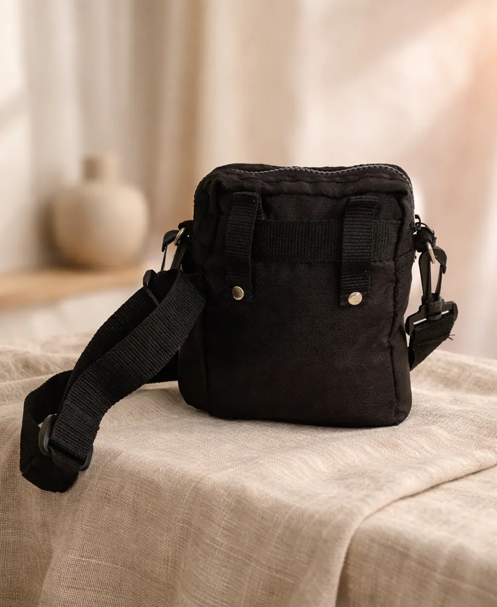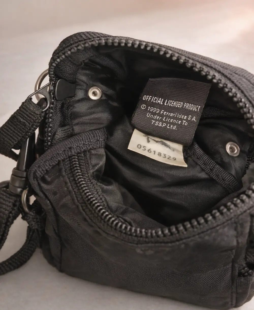 Un diseño funcional para el ritmo de la ciudad. Fabricada en resistente lona de poliéster color negro, te garantiza organización gracias a sus múltiples compartimentos seguros. Condición: 9.5/10 (Excelente), muestra un mínimo desgaste de color en uno de sus accesorios metálicos. Medidas: 13.5 x 21 x 10 cm.