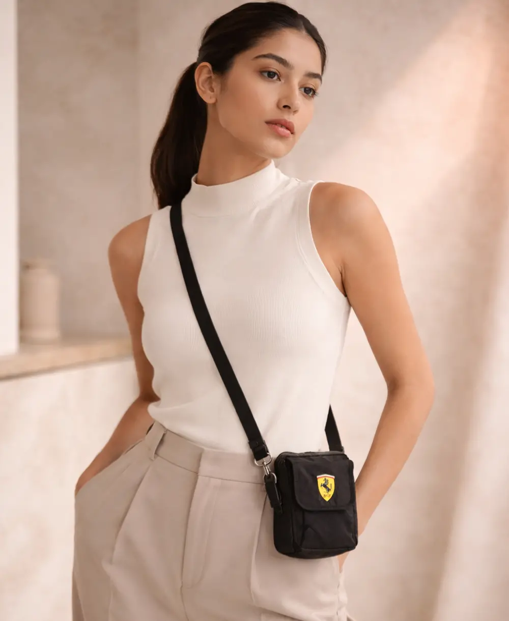 Capacidad: Tus esenciales: Cabe un smartphone, tarjetero, llaves y lentes de sol (sin estuche).
